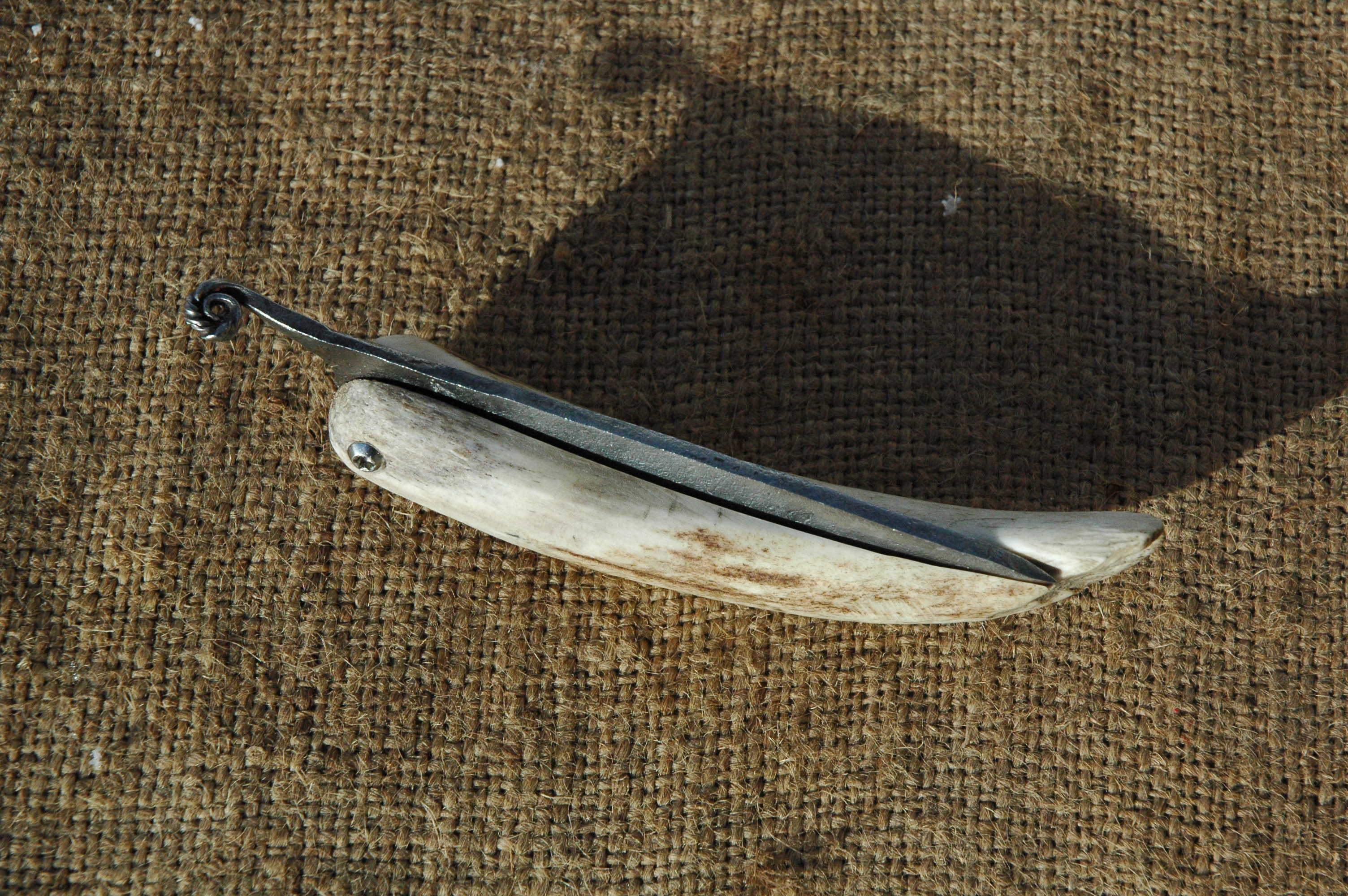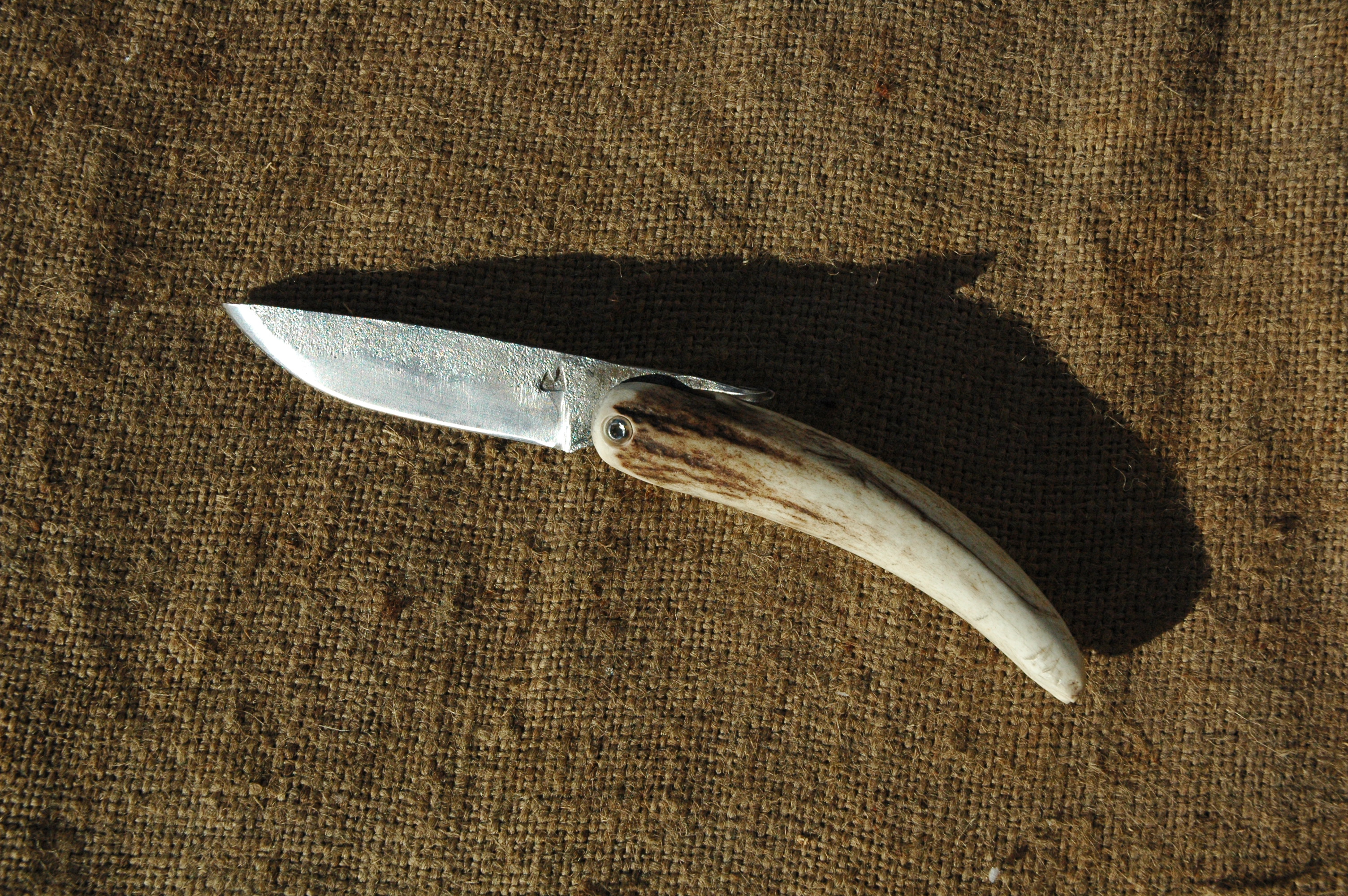 Petit couteau dont la lame est forgée dans l’acier au carbone. Le manche est taillé dans une corne de cerf. Il offre une prise ergonomique naturelle à ce couteau piémontais à l’aspect primitif et son asymétrie une fois fermé lui apporte son charme singulier.