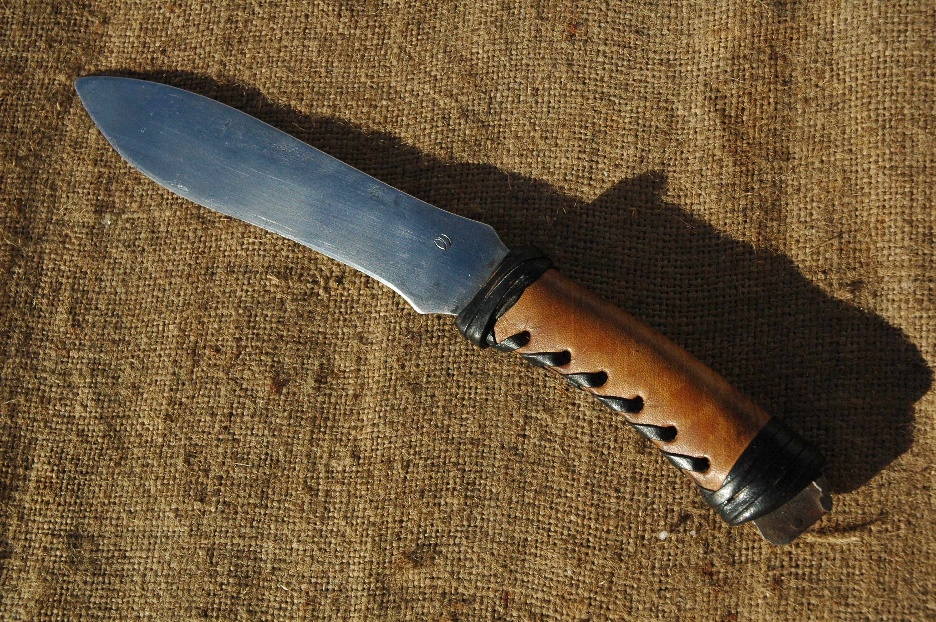 Couteau elfique Acier au Carbone XC75 Manche en cuir Lame 17cm Couteau 29cm