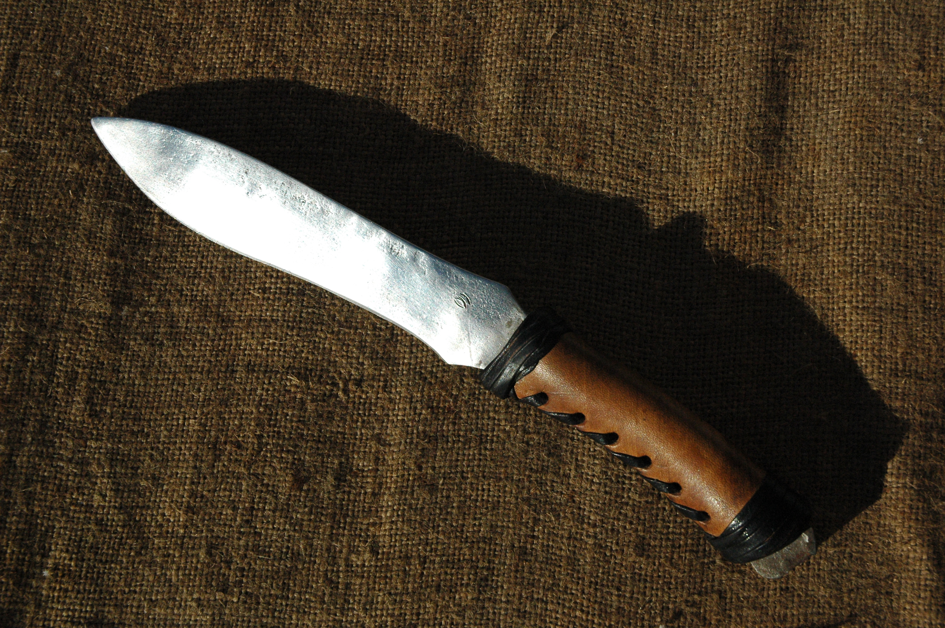 Cette dague offre des courbes singulières d’inspiration elfique. Elle est forgé dans l’acier au carbone. La lame de 17cm présente les marques de la forge. Le manche est en cuir et mesure 12cm.